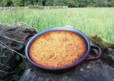En El Andral elaboramos diariamente nuestras quesadas pasiegas con leche de vaca recién ordeñada procedente de nuestra propia granja ecológica. El proceso de elaboración de la quesada consiste en cuajar la leche y mezclarla con el resto de ingredientes, la mantequilla, la harina, los huevos y el azúcar, además de la ralladura de limón y la canela que le aportarán su característico sabor, para posteriormente hornearla.